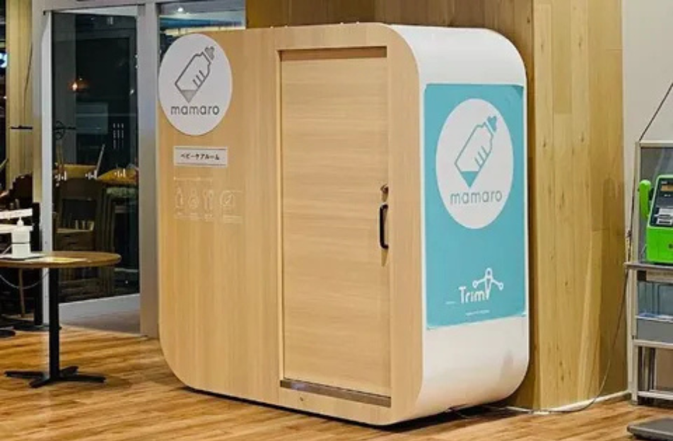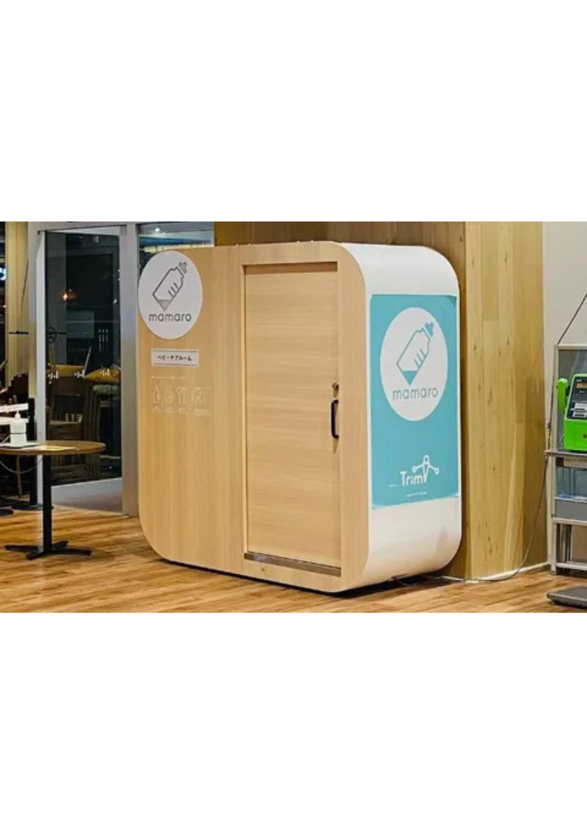 授乳室「mamaro」内で配信するデジタルサイネージ。完全個室空間で子育て世代に届き、視聴完了率が高いのが特長。