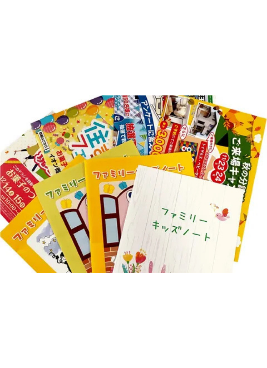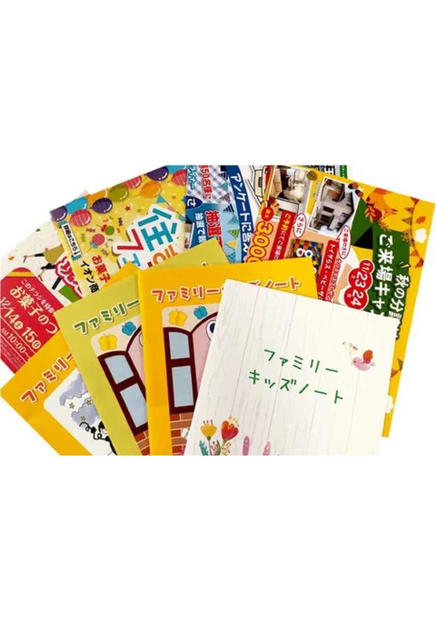 保育園・幼稚園児の家庭向け自由帳同梱チラシ。手渡し配布で高い到達率を誇り、子育て家庭へ効果的な広告媒体。