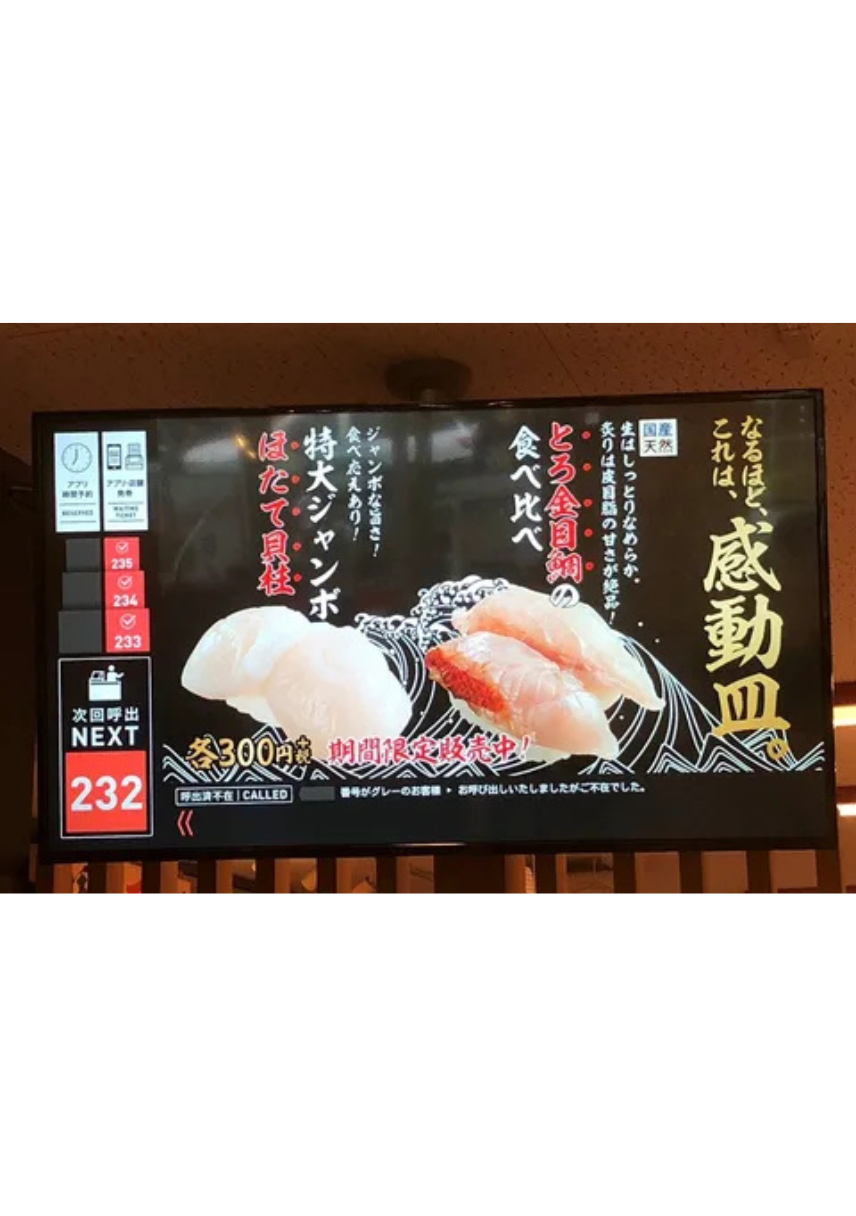 回転寿司スシロー店内で実施可能な広告。全国展開で多くのファミリー層にリーチでき、地域密着から全国展開まで対応可能。