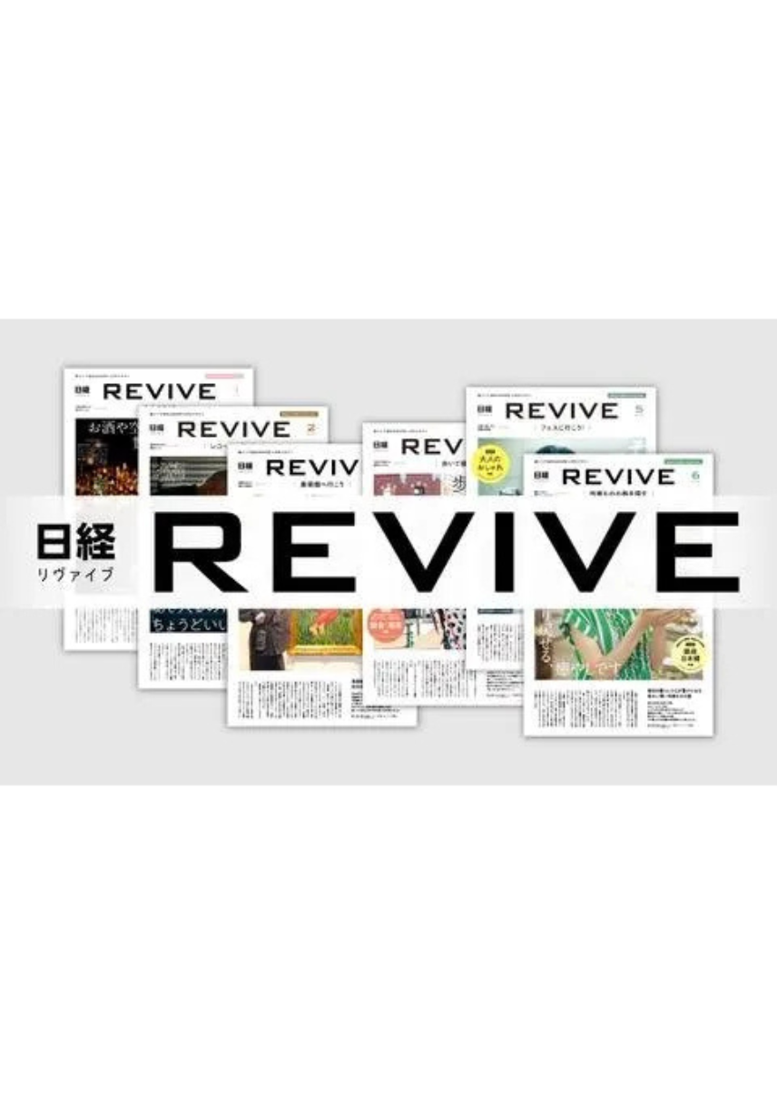 『日経REVIVE』は日本経済新聞朝刊に毎月折込配布する情報紙。50代以上の新シニア・富裕層へ上質な暮らしや趣味・活動情報を届ける高付加価値媒体。